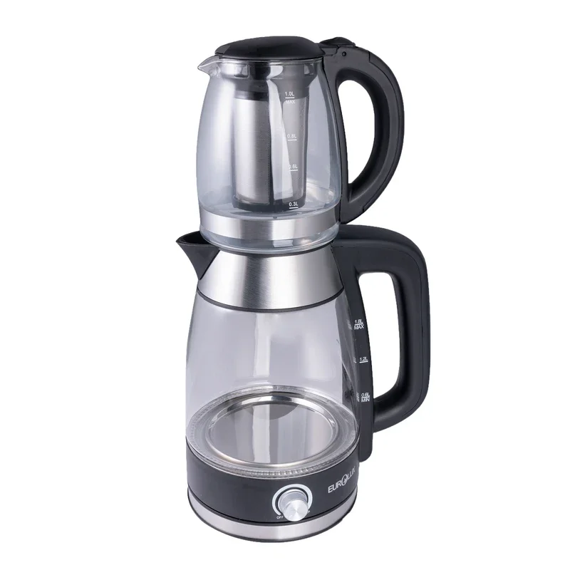 چای، محبوبترین نوشیدنی بین ما ایرانیهاست و کتری و قوری عضو جدانشدنی از آشپزخانه خیلی از ماست. تهیه چای به صورت سنتی توسط کتریهای شعلهای انجام میشود اما با آمدن چایسازهای برقی، تهیه این نوشیدنی سریعتر و آسانتر شده است. کتری برقی یورولوکس مدل TT2807TGG، یک محصول زیبا و درعینحال کاربردی است. بدنه کتری از شیشه مقاوم در برابر حرارت ساخته شده است. این محصول قابلیت چرخش 360 درجه دارد. ظرفیت قوری این محصول 1 لیتر و ظرفیت کتری 1.8 لیتر است و از این نظر در رنج نرمال قرار میگیرد. این محصول طراحی زیبایی دارد و یک دستگاه جمعوجور به صورت کتری و قوری روی هم است که فضای چندانی را در آشپزخانه شما نمیگیرد. این کتری همچنین دارای دکمه روشن/خاموش و تکنولوژی خاموشی خودکار هنگام کم بودن آب درون کتری است. این محصول دارای تکنولوژی گرم نگهدارنده نیز است که میتوانید به صورت دستی آن را فعال کنید. چای ساز یورولوکس مدل TT2807TGG با توان حداکثری 2200 وات و با سرعتی مناسب آب را جوشانده و چایی خوشطعم و خوشعطری را مهیا میکند.