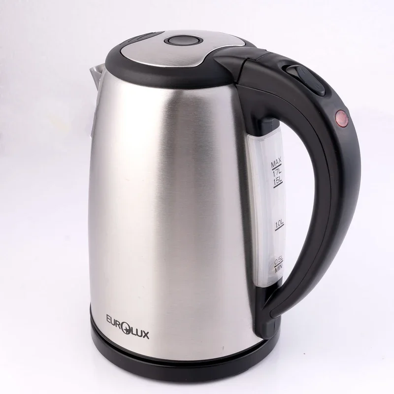با استفاده از کتری برقی میتوان به راحتی و بدون اتلاف انرژی انواع چای و دمنوش را آماده کرد.کتری برقی بسیار سریعتر از کتری معمولی یا سماور میتواند آب را به نقطه جوش برساند و ازین نظر در میان مصرف کنندگان بسیار پرطرفدار شده است. کتری برقی یورولوکس مدل EU-EK2843DSB، یکی از باکیفیت ترین کتری های موجود در بازار با توان 2200 وات و گنجایش 1.7 لیتری می باشد. در طراحی بدنهی این محصول از استیل و پلاستیک مقاوم استفاده شده است. دارای دکمه روشن/خاموش و تکنولوژی خاموشی خودکار هنگام کم بودن آب درون کتری است و همچنین دارای نشانگر LED است که زمان جوشیدن آب را نشان می دهد و پس از اتمام گرمایش به طور خودکار خاموش می شود. همچنین کتری دارای دهانه 4.3 اینچی و دکمه لمسی آزاد کردن درب می باشد که به راحتی می توان آن را از آب پر کرد و در صورت نیاز شست و شو نمود. طراحی دسته ارگومونیک و عایق است و به هیچ وجه گرمای کتری به دست شما منتقل نمی شود. این کتری همچنین دارای محفظه جمع آوری سیم و پایه ضد لغزش است که استفاده از آن را راحت می کند. با توجه به ویژگی های ذکر شده، کتری برقی یورولوکس مدل EU-EK2843DSB می تواند پاسخگوی نیاز شما در آشپزخانه یا دفترکارتان باشد.