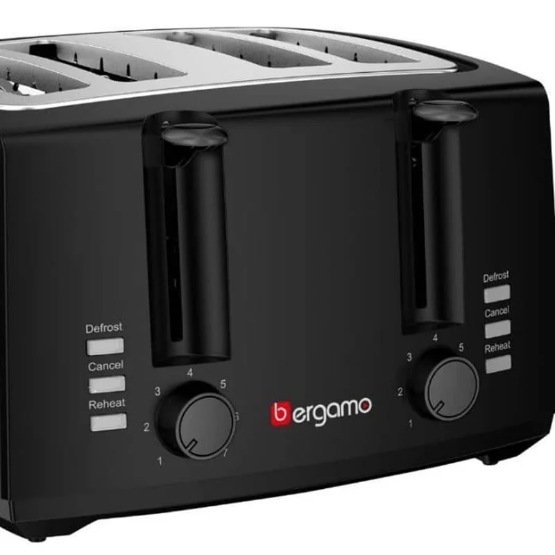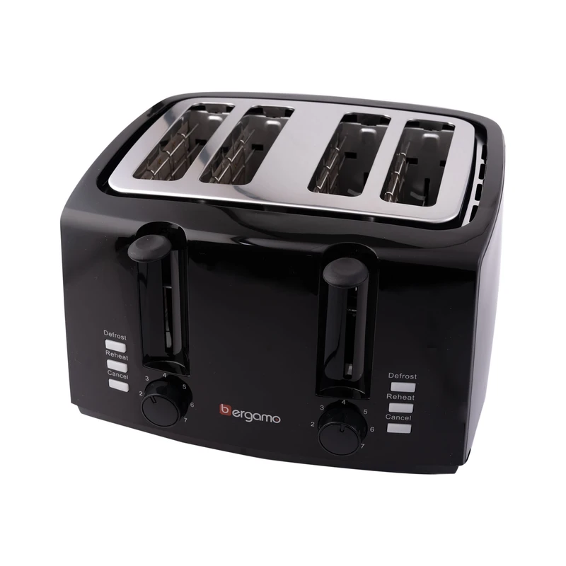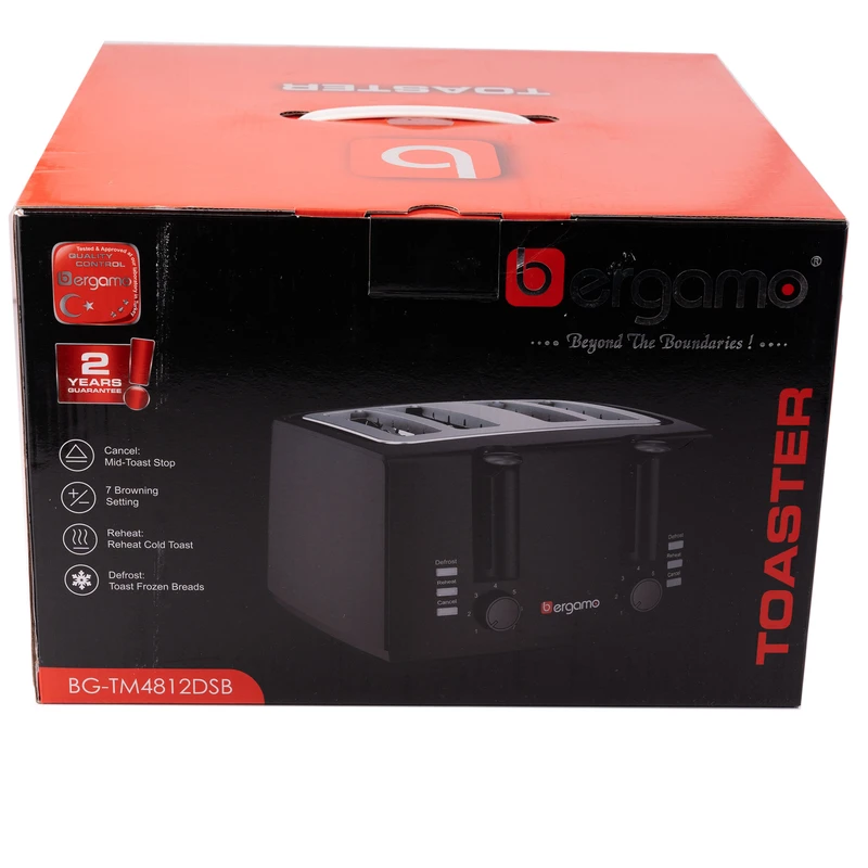 دستگاه توستر نان ۴ اسلایسه و فوق جذاب با ظاهر تمام مشکی و با کیفیت از برند نام آشنا برگامو ترکیه . دستگاه حرفه ای هست و سایز بزرگ . بدون شک یکی از با کیفیت ترین توستر نان های بازار . دارای هفت درجه تنظیم حرارت مختلف برای برشته کردن نان میباشد و جای قرارگیری ۴ عدد نان را داراست . برای کار با دستگاه نان ها را در جایگاه قرار میدهیم دستگیره پرش نان را به سمت پایین می فشاریم و درجه برشتگی نان را به دلخواه تنظیم می نماییم هنگامی که نان ها برشته شدند بطور خودکار بیرون آمده و دستگیره به حالت اولیه خود برمی گردد و نانها آماده سرو می باشند.هرگاه خواستار متوقف کردن عملیات برشته شدن نان قبل از به پایان رسیدن کامل عملیات بودیم ، دکمه توقف عملیات را می فشاریم. دو موتور جداگونه و مجزا دارد و هر چند تاش که دلخواه بود میشه استفاده کرد . عملکرد یخ زدایی موجود در این توستر باعث راحتی کار شده زیرا میتوان نان های یخ زده رادر آن قرار داد و دیگر نیازی نیست صبر کرد تا یخ آنها ذوب شود.خردهنانها در کشوی جمعآوری مخصوص این کار میریزند که بهراحتی از دستگاه بیرون میآید تا در استفادههای بعدی دود و سوختگی ایجاد نشود. قابلیت گذاشتن نان بربری و سنگک هم بصورت تیکه تیکه دارد .