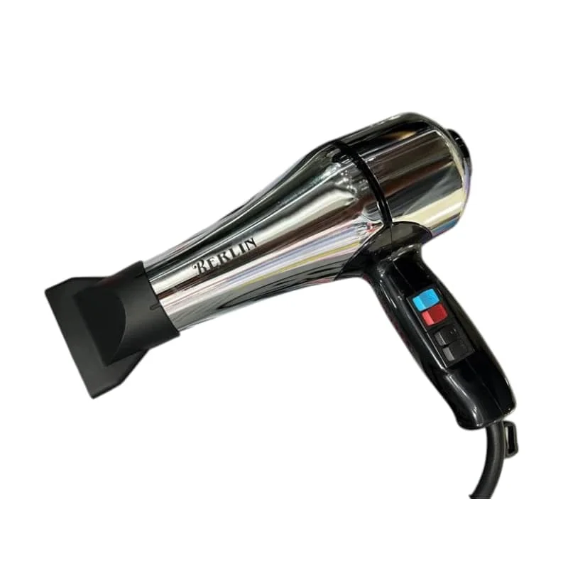 کاربردی و حرفه ای سشوار تمام استیل برند برلین دارای ۳ دما و ۲ سرعت متفاوت ، شامل دو نازل ، دارای گیره برای آویزان کردن .