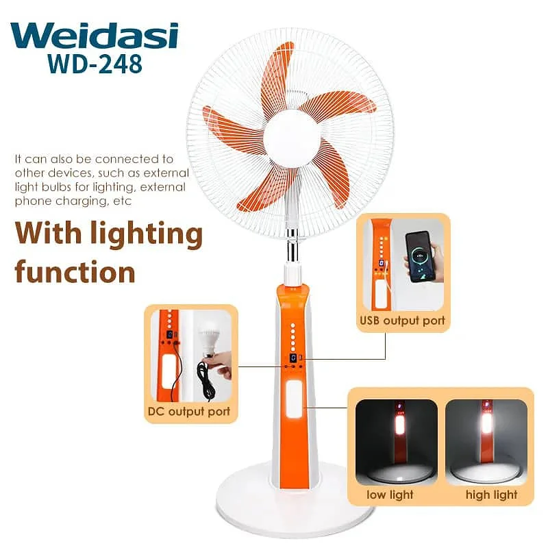 با پنکه شارژی ایستاده ویداسی مدل WD-248، نسیم خنک و آرامشبخش را به هر کجا که هستید ببرید. طراحی سبک و قابلحمل، باتری قدرتمند و کارایی بالا این پنکه را به گزینهای ایدهآل برای خانه، محل کار یا سفر تبدیل کرده است. تجربه خنکی بینظیر و راحتی را با این محصول جذاب و کارآمد تجربه کنید! خرید کنید و خنک بمانید!