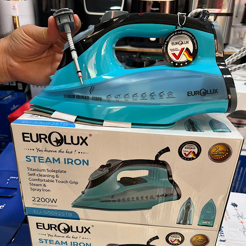 شرکت یورولوکس آلمان برای ساخت این محصول خود از مواد با کیفیتی استفاده کرده تا طول عمر اتو بیشتر شود. این برند در سراسر دنیا نمایندگی دارد و استاندارد های جهانی و اروپایی رو کاملا دارد . اتو بخار یورولوکس مدل 5092 اتوی با کیفیت و حرفه ای برند یورولوکس آلمان هست که پرتاب بخار بسیار قوی 2 متری دارد که کلیپ تست محصول رو میتونید داخل پیج اینستگرام ما ببینید . و سیستم رسوب گیر حرفه ای هم داره که اکثر اتو ها این اپشن خیلی مهم رو ندارن و عملکرد رسوب گیرش بصورت اکسترنال(جداشونده) هست . رنگ و طراحی فوق العاده جذابی هم دارد. به همین دلیل توانسته نظر افراد سخت پسند را به خوبی جلب کند.کابل برق دستگاه از یک لایه کنفی ساخته شده تا در صورت برخورد سیم به کفی اتو دچار سوختگی نشود.کفی اتو تیتانیومی هست و نچسبه و مقاوم بالا در برابر خط و خش داره و بالاترین جنس صفحه اتو هست در حال حاظر همچنین کفی تیتانیومی روی لباسها ردی نمیاندازد و حرارت را به خوبی منتقل میکند و حتی به پلاستیک هم روش بزارین نمیچسبه. و اتو بخار یورولوکس به سیستم بخار مجهز شده ،که با فشردن دکمه بخار روی دسته، بخار پر فشار از روزنههای کفی تیتانیومی خارج میشود. همچنین با تغییر درجه روی دسته اتو میتوانید میزان بخاردهی را تغییر دهید. اگر چروکها باز هم مقاومت از خود نشان دادند ، با فشردن دکمه آب پاش مقداری آب روی آنها اسپری کنید تا دیگر چروکی روی پارچه نبینید.