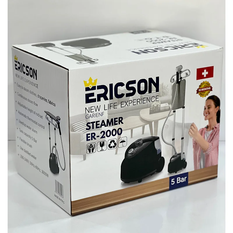 اتو بخار ایستاده اریکسون مدل ER-2000 ، این اتو بخار ایستاده مارک اریکسون توان قوی و پر قدرت 3000 واتی داره با پمپ 5 بار واقعی ، جا لباسی هم داره که کار شما رو راحت تر میکنه ، هم مناسب مزون هم مناسب استفاده خانگی ، سیستم شروع سریع هم دارد. قیمت اقتصادی در عین حال باکیفیت و بخار قوی .
